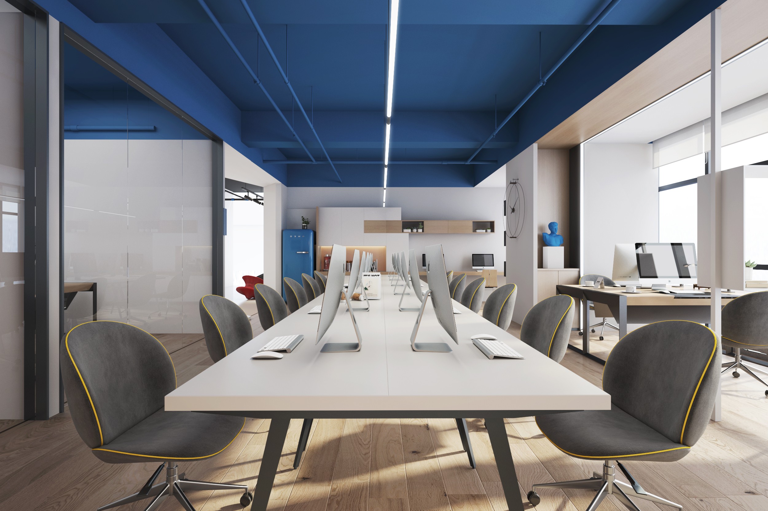 根據(jù)不同功能區(qū)域的用途,選擇合適的顏色進(jìn)行搭配。比如,會(huì)議室可以選擇深色調(diào),而辦公區(qū)域則可以采用淺色系。